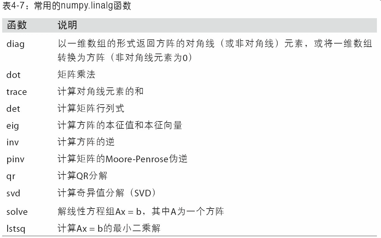 表 4-7 中列出了一些最常用的线性代数函数。