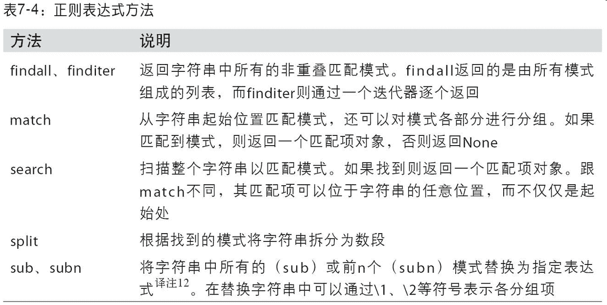 表 7-5 介绍了更多的 pandas 字符串方法。